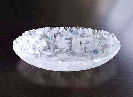 様々なガラスの表情が見える中皿です。白色と差し色で爽やかな