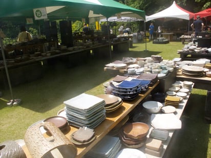 傘立、人形など陶・ガラス作品全てを特別価格で販売します。